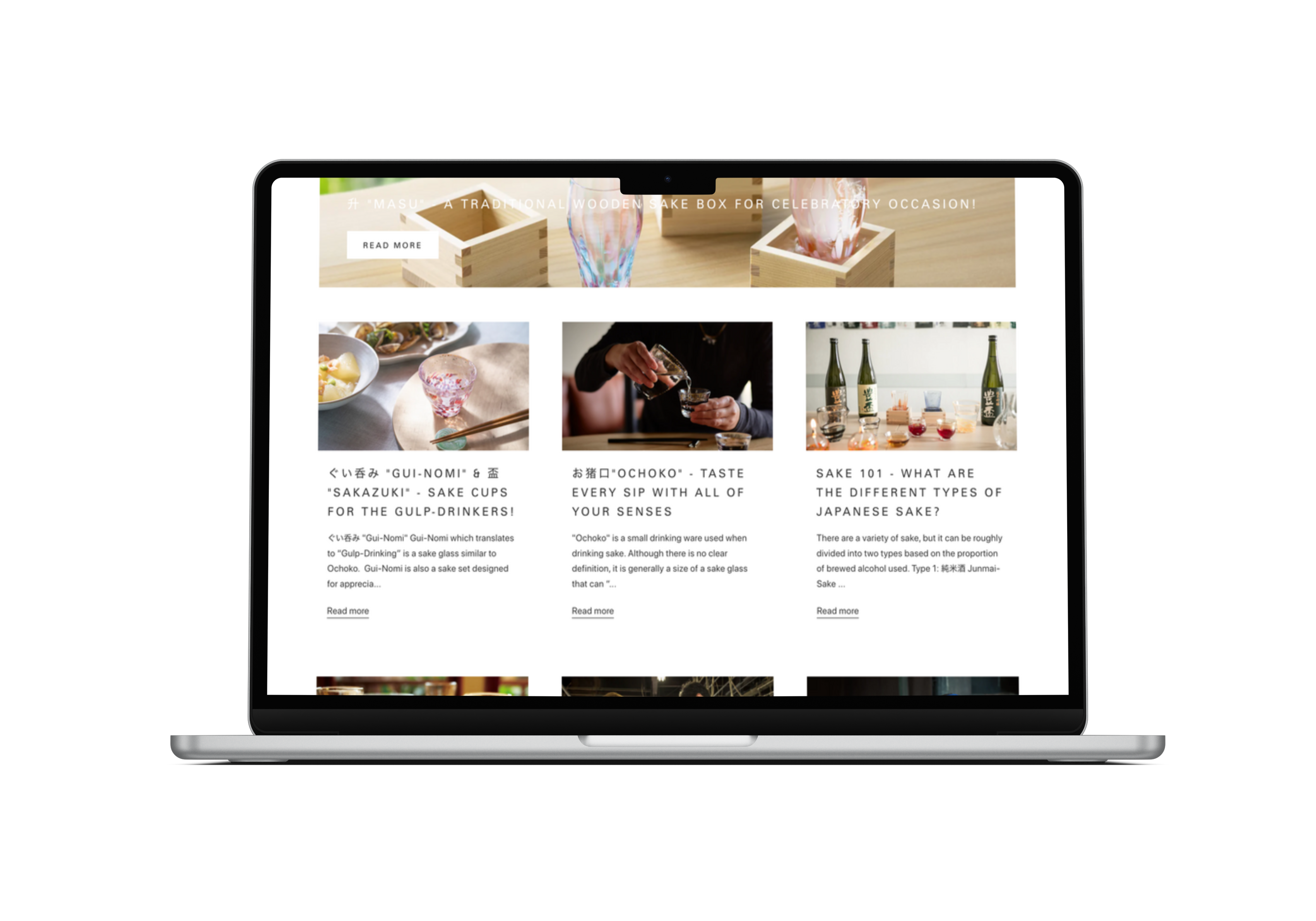 With an intention to educate the customers, we have published blog posts about Japanese sake culture and sakeware, as well as the stories behind the Aderia craftsmen. By incorporating sake terminology and SEO’s we made the website more searchable and effective in inviting more traffic.