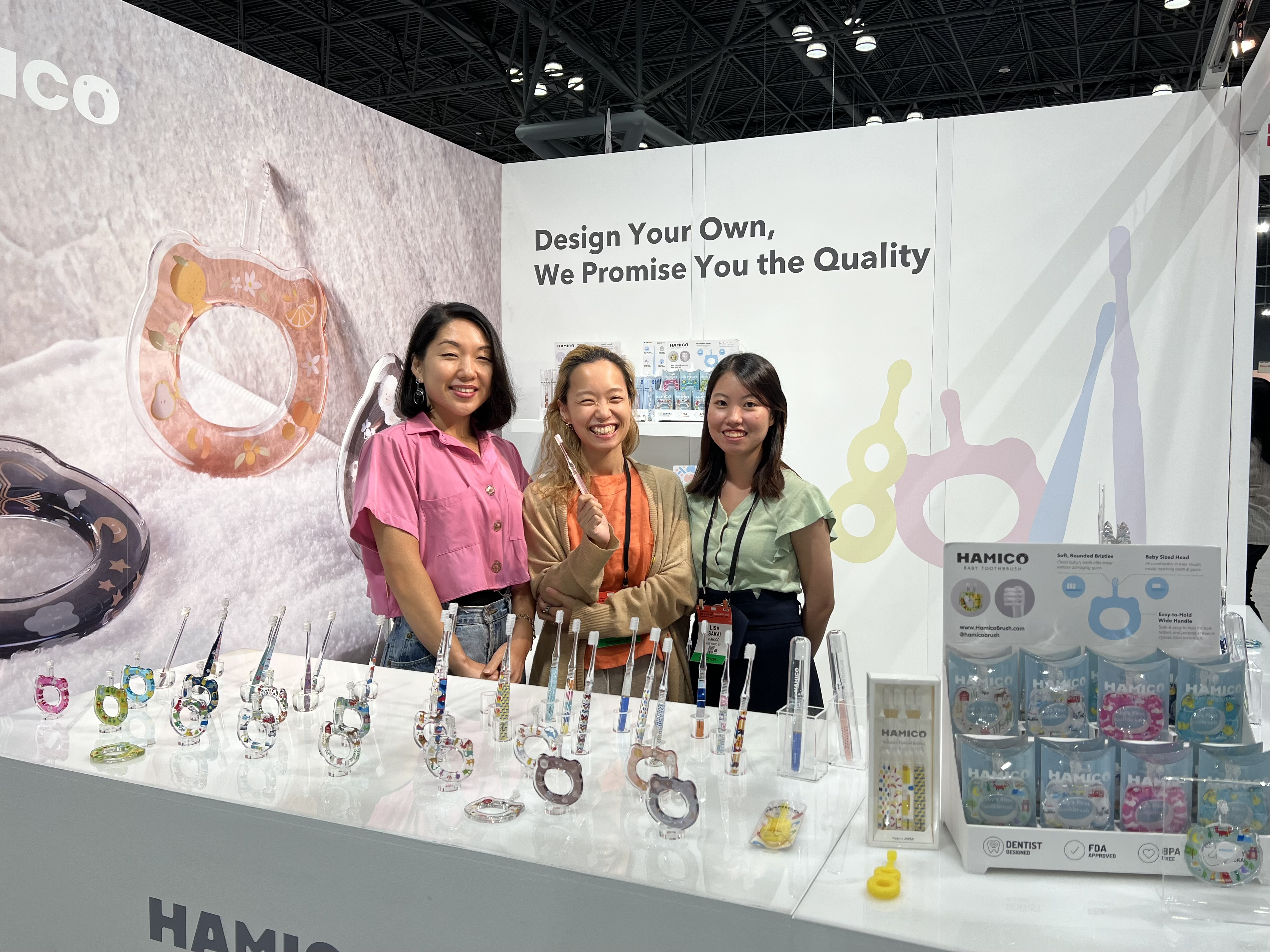 Developing an inviting booth design is the essential contributor to the success of the exhibition, as you’re introducing your brand to most of the buyers for the first time. Since the exhibition visitors are preoccupied with hundreds of other booths, you want to make sure the booth copy communicates exactly what makes your booth different from the one next to you. As HAMICO was focused on selling customizable designs as well as their signature baby toothbrush, we ensured the booth was designed with a copy that makes the buyers say “Tell me more about your product.”