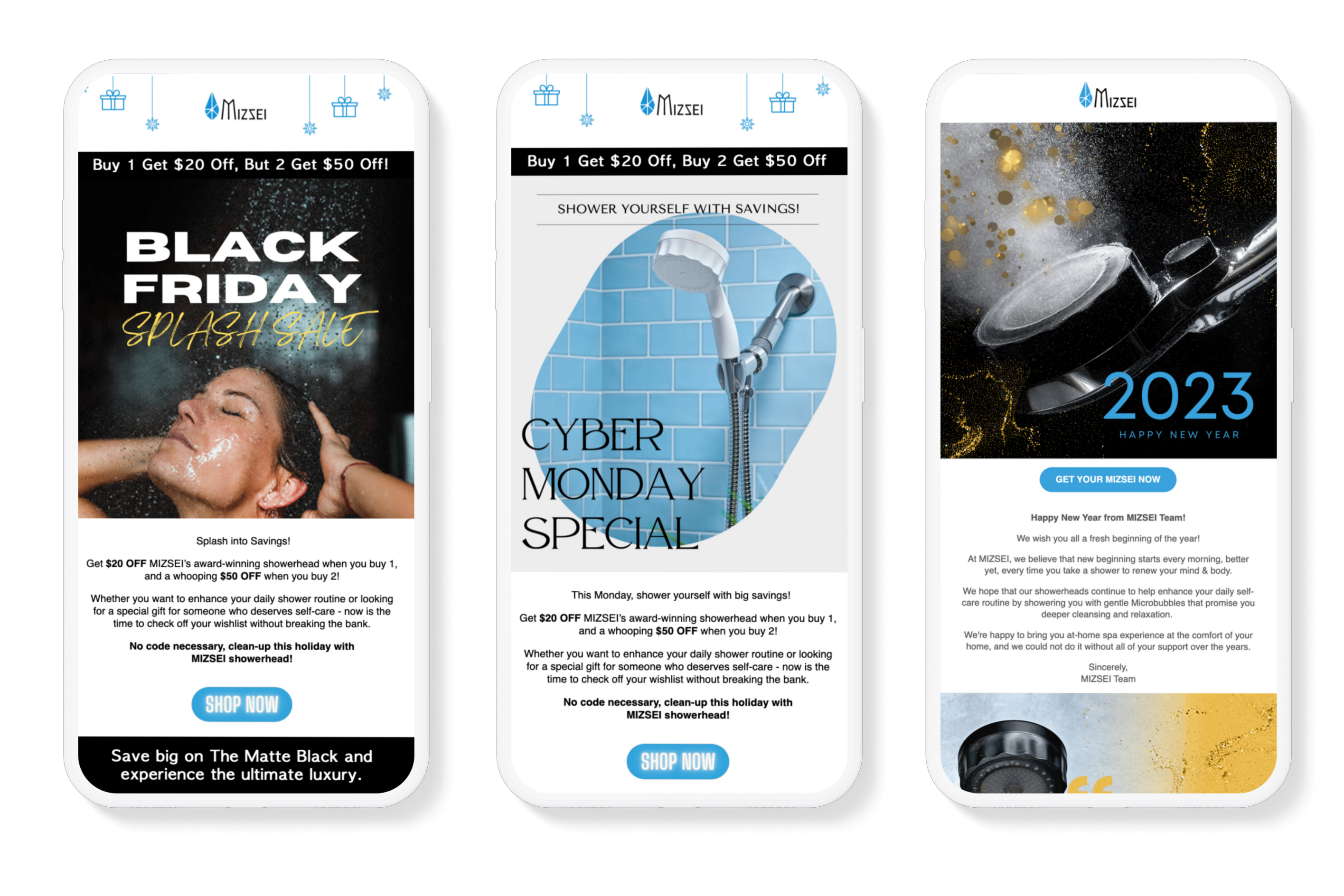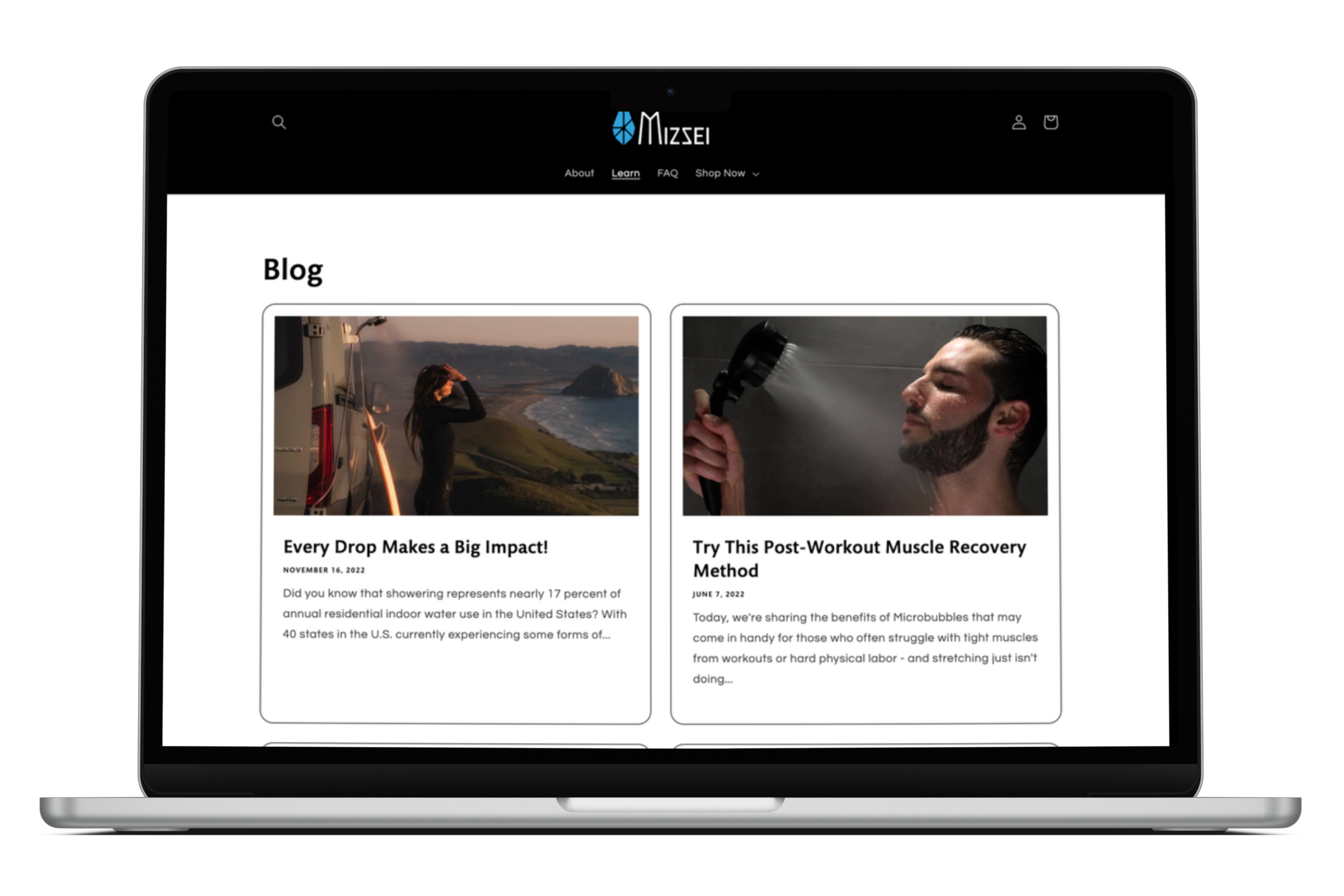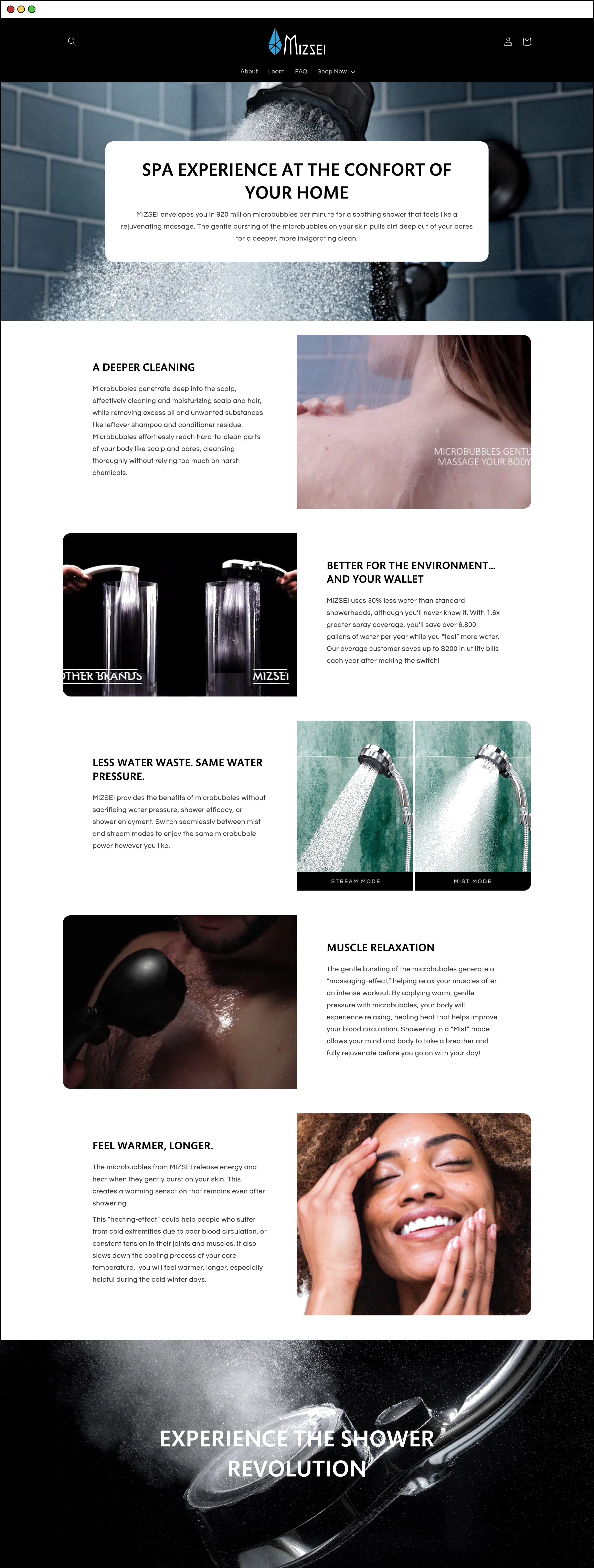 We transformed the technical specs into phrases that customers can easily comprehend and relate. Through concise benefit-focused website content, bi-weeily newsletters, and SEO incorporated blogs, we helped communicate the “Next-Level Rejuvenation” and reasons to shower with MIZSEI above standard showerheads.